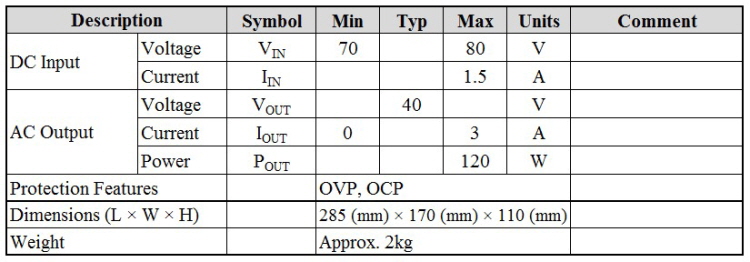 The specifications of single-phase inverter development module