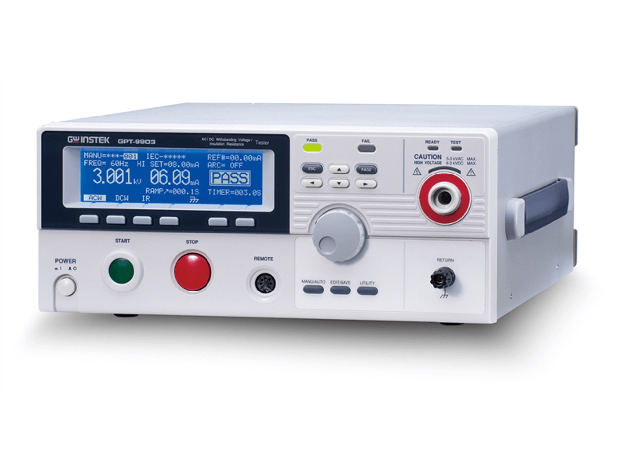 GPT-9900 시리즈는 최대 500VA 출력 용량을 갖춘 새로운 안전 시험기(하이팟 테스터/히팟 테스터)입니다. GPT-9904, GPT-9903A, GPT-9902A 및 GPT-9901A를 포함한 네 가지 모델은 200VA 출력 용량을 갖춘 GPT-9800 시리즈에 합류하여 전자 제품 및 구성 요소의 안전 테스트에 대한 높은 전력 요구를 충족시키기 위한 시장에 참여했습니다. GPT-9000 시리즈는 IEC, EN, UL, CSA, GB, JIS 및 기타 안전 규정을 준수하기 위해 필요한 모든 주요 테스트 항목을 지원합니다.