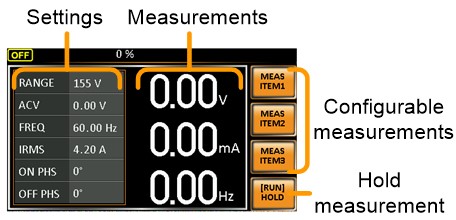 옵션에 따른 출력 증가 (0-600Vrms/45999.9Hz) • 낮은 리플 및 노이즈 • 측정 및 테스트 기능: 전압(VOLT), 전류(CURR), 전력(PWR), 허용 전력(SVA), 피크 전류(IPK), 피크 전류 홀드(IPKH), 주파수(FREQ), 역률(PF), 복합 역률(CF) • 2mA ~ 35A의 소형 AC 전류 측정 지원, 최소 해상도 0.01mA(APS-7050 및 APS-7100) • 역전류 경보 기능 • 10 세트의 순서 기능으로 출력 파형 편집
