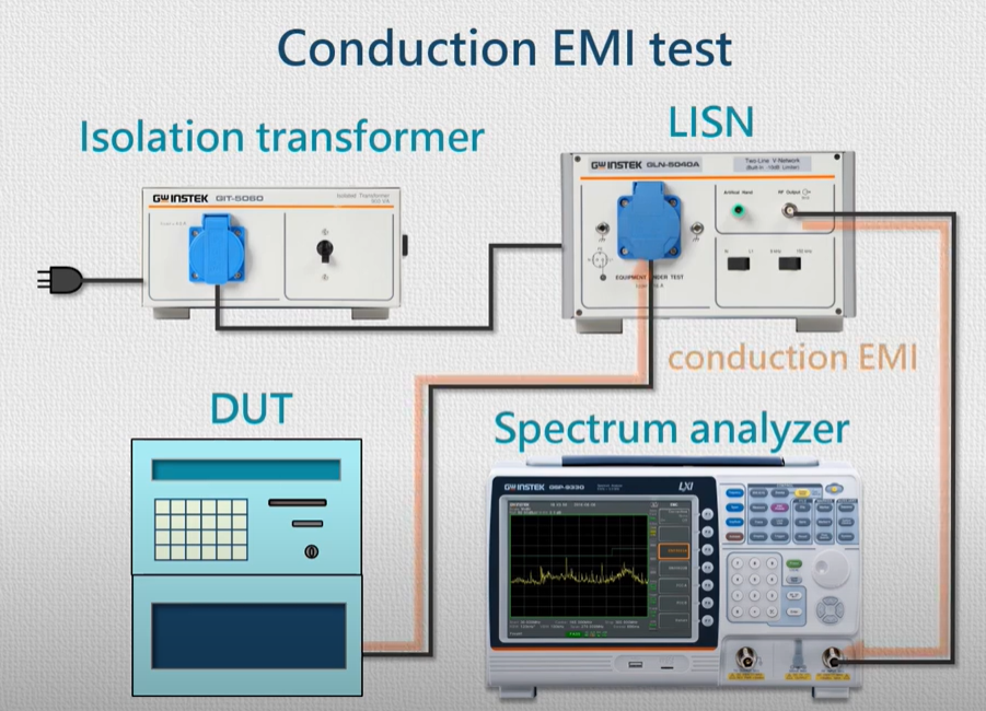 또한, DUT에서 발생한 간섭 전압을 스펙트럼 분석기와 결합합니다.
