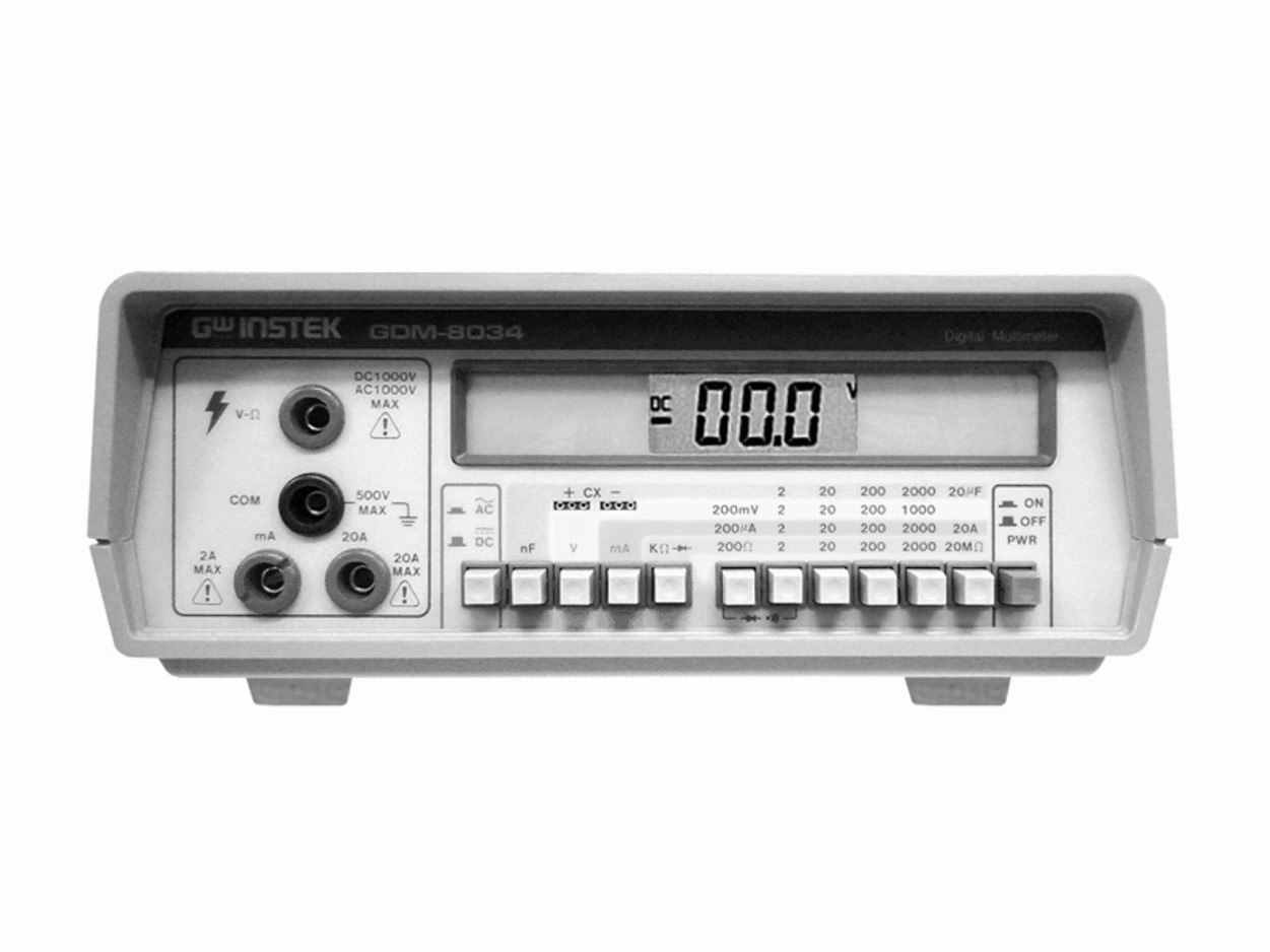 3 1/2 (1999 Counts) LCD Single Display. The GDM-8034 is the most affordable and cost-effective bench-top digital multimeter in the GW Instek range. A large 0.5" LCD with 3 1/2 digits always provides a crisp display of the measurement results. A series of powerful built-in functions, such as AC/DC Voltage, AC/DC Current, Resistance, Capacitance, Diode Test, and an Audible Continuity Beeper, make application measurements simpler and easier. A compact profile, sufficient functionality, andexcellent cost to performance make the GDM-8034 best suited for educational institutions such as schools and training centers. |