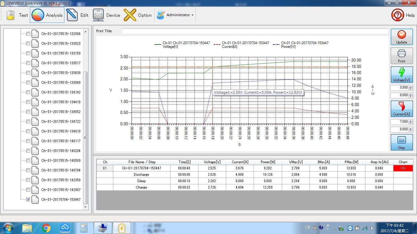 Automatic charging and discharging test of Energy Storage Device (LinkVIeW) GW Instek introduces LinkVIeW software to allow users to quickly set test instruments for the operation of charging and discharging tests on battery and super capacitor, etc. Users can define charging and discharging procedures to automatically execute procedures so as to obtain measurement results. History graphs are available and they can be exported to Excel for further analysis.