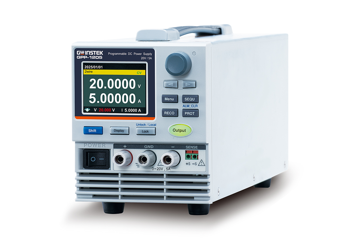 GPP-1000 시리즈는 2가지 모델 GPP-1205 (20 V / 5 A / 100 W), GPP-1323 (32 V / 3 A / 96 W)로 구성되어, 테스트에 필요한 전압, 전류, 전력에 따라 선택할 수 있습니다.
