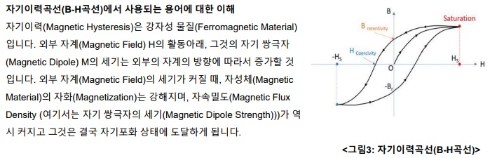 이것을 자기이력곡선(히스테리시스 곡선 또는 B-H곡선)이라 부릅니다.