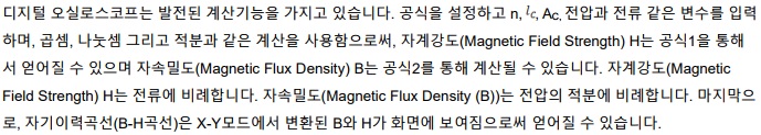 자속밀도(Magnetic Flux Density (B)) 자계강도(Magnetic Field Strength (H)) 생성하기 위한 디지털 오실로스코프 사용법을 상술하며