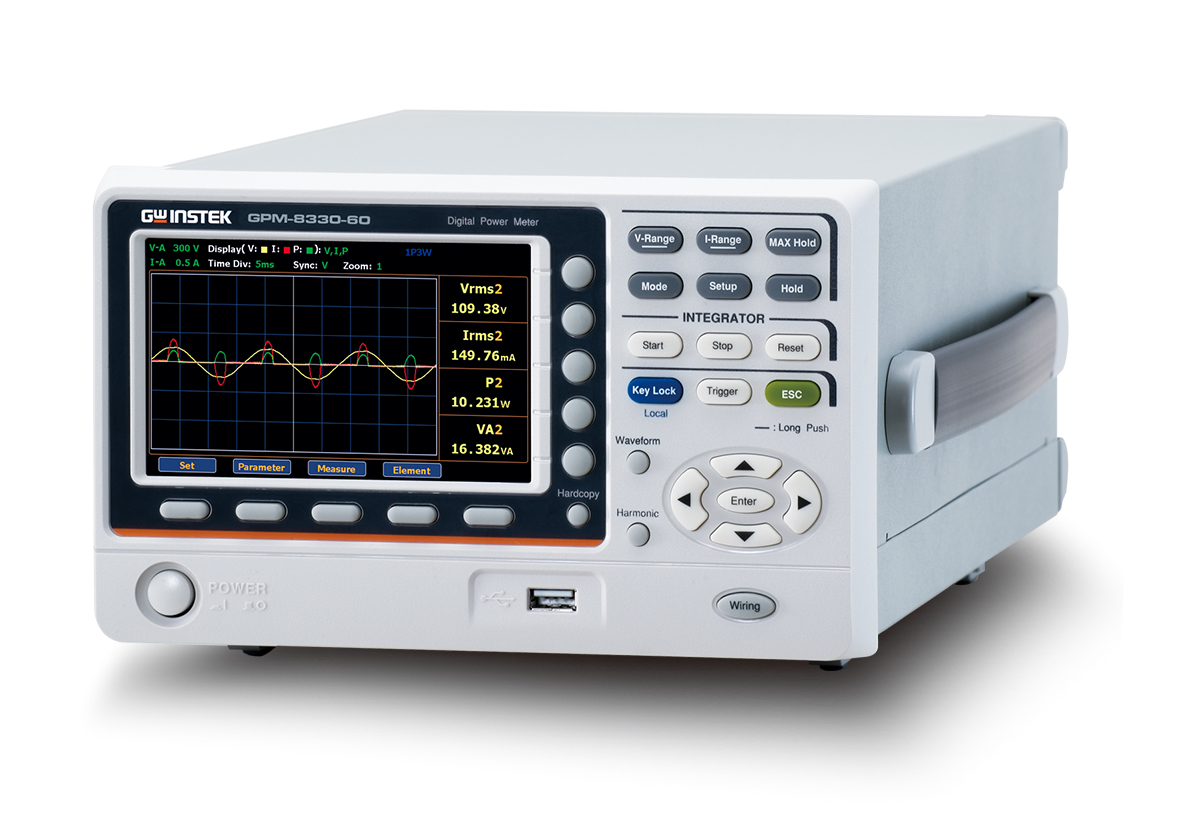 GPM-8320-60/8330-60 모델은 전압/전류/전력 파형 출력 능력을 갖추었으며, 적산 측정 기능과 높은 차수의 고조파 측정 및 분석(50Hz / 60Hz 측정은 IEC 61000-4-7*1 요구사항에 대한 기준을 충족합니다.), 외부 센서 입력 단자, 다양한 통신 인터페이스를 가지고 있습니다.
