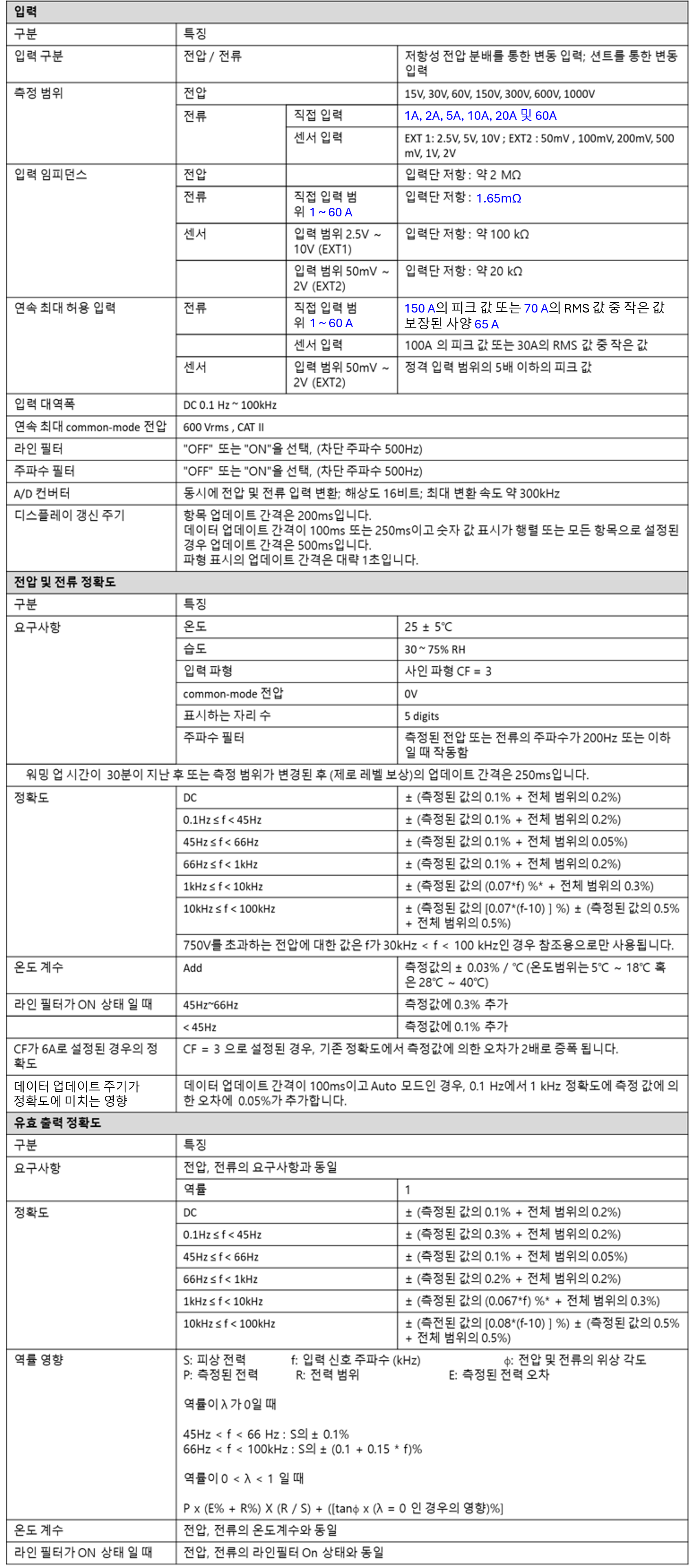 > 기타계측기 > AC / DC 파워미터 테스트 주파수 DC, 0.1 Hz ~ 100 kHz